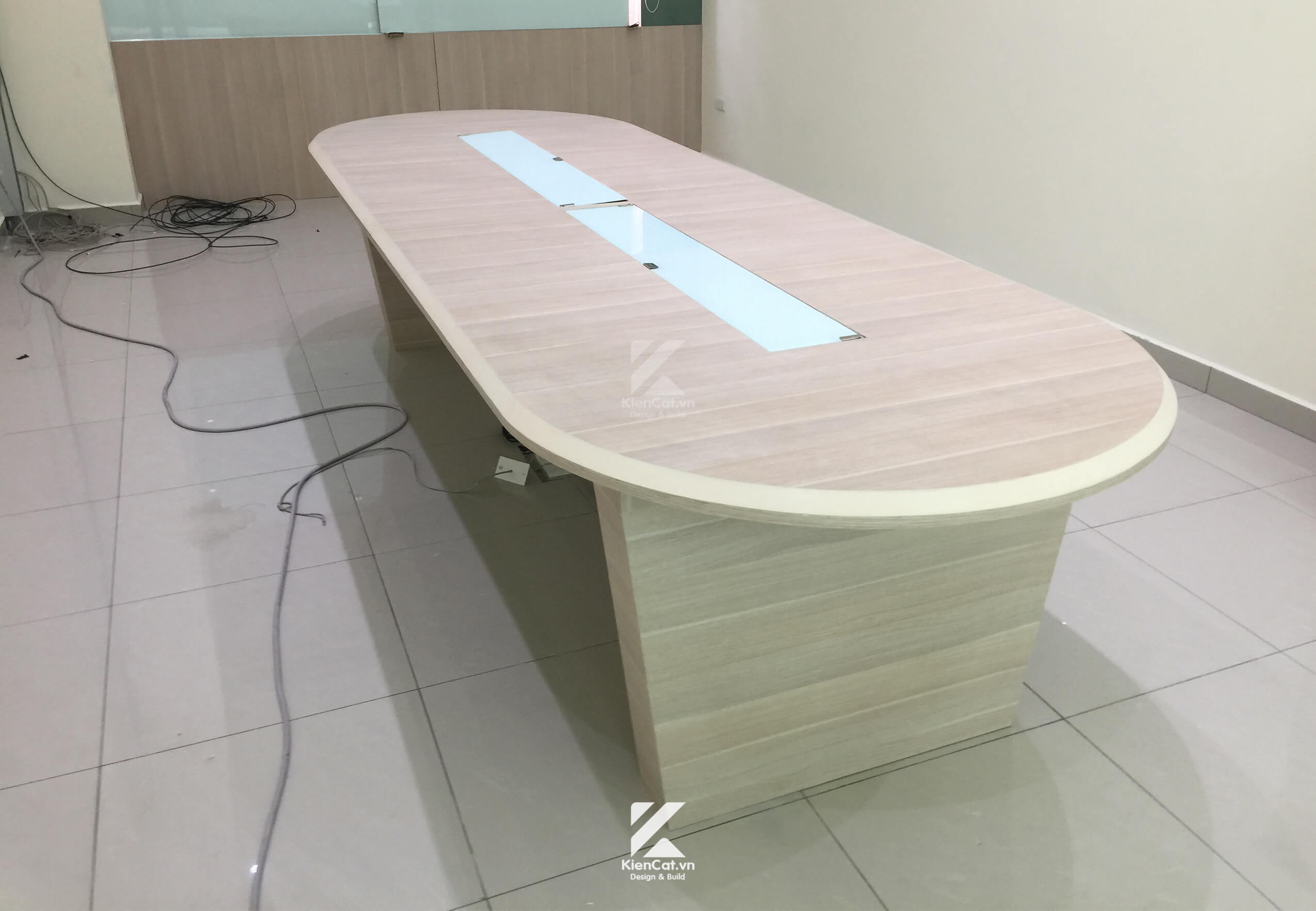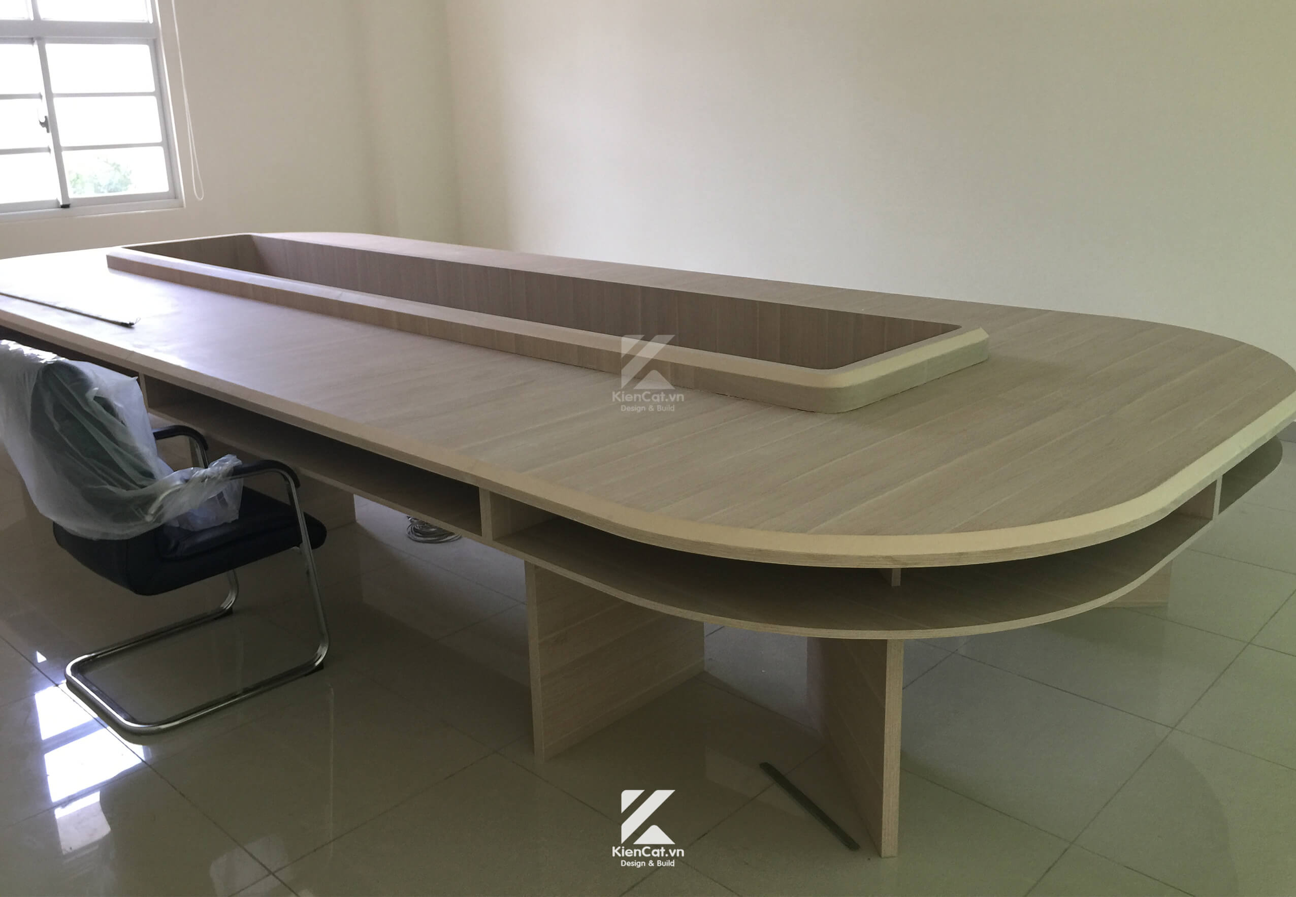 Phòng họp được tích hợp bàn họp lớn quy mô hơn 10 người. Được thiết kế hiện đại, phá cách và thi công sắc nét, tinh xảo.