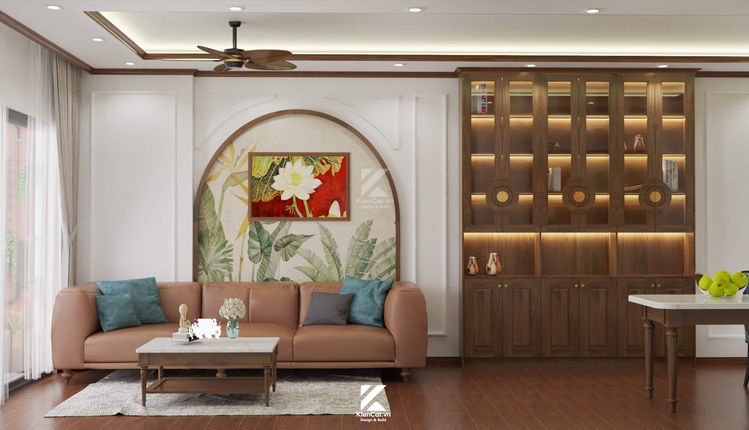 thiết kế chung cư phong cách indochine nổi bật với phòng khách tinh tế và sang trọng