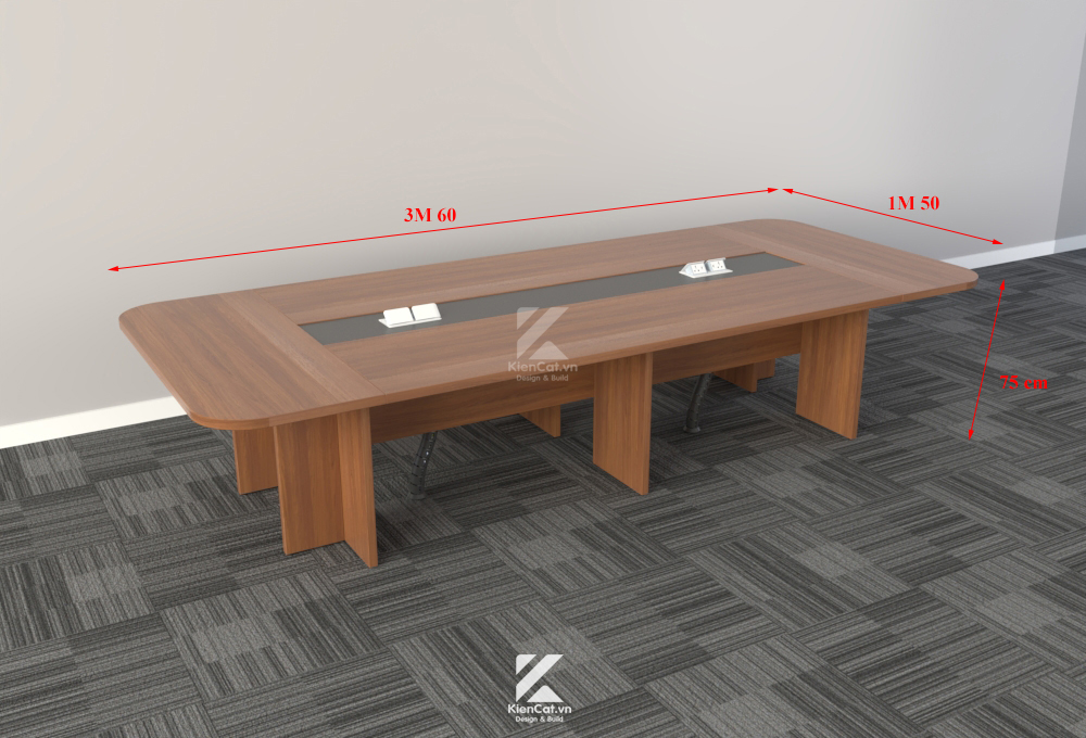 Với kích thước tiêu chuẩn (thường dài từ 2m8 đến 3m2), mẫu bàn này được thiết kế theo phong cách tối giản nhưng quyền lực. Các đường nét góc cạnh được xử lý tinh xảo, kết hợp với các chi tiết như nắp hộp điện kỹ thuật âm bàn, tạo nên một tổng thể vừa thẩm mỹ vừa tiện nghi.
