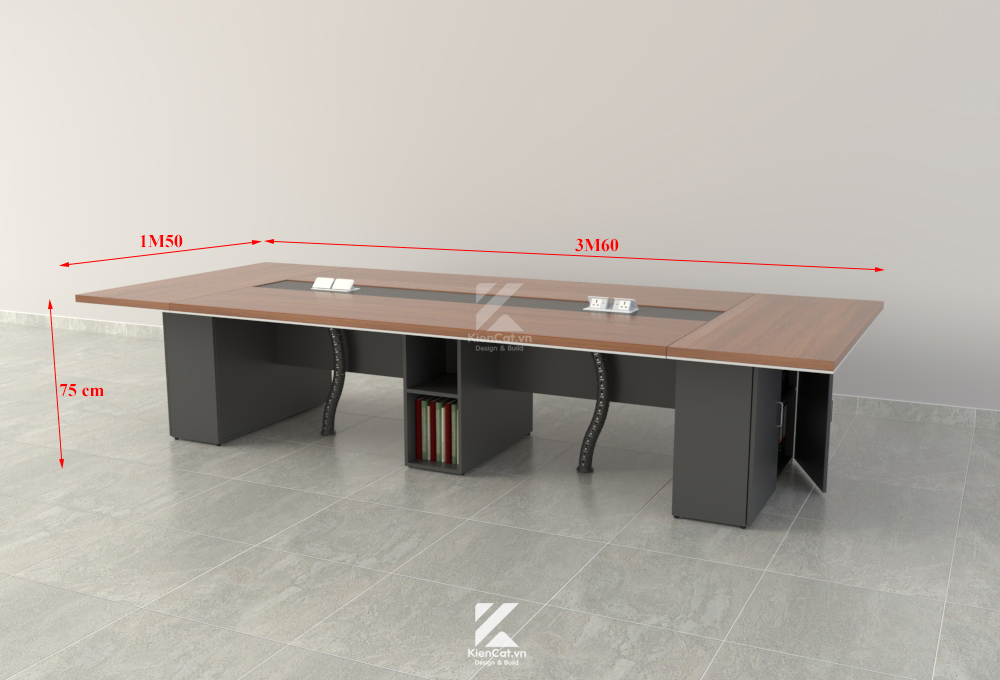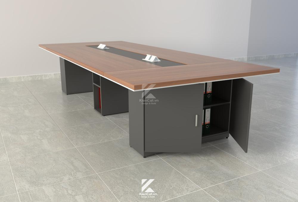 • Hệ thống lưu trữ thông minh: Chân bàn được thiết kế dạng tủ kệ, giúp lưu trữ hồ sơ ngay tại chỗ, tối ưu hóa diện tích phòng họp.